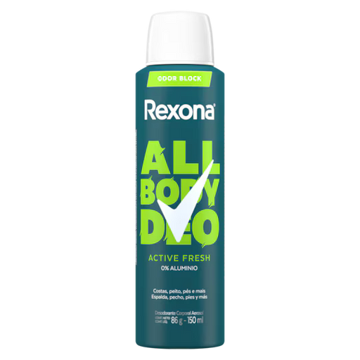 RexonaDesodorante spray Rexona ALL BODY active fresh 150ML O% aluminio para uso en espalda pecho pies y mas Que nada te detenga Para uso en todo el cuer...