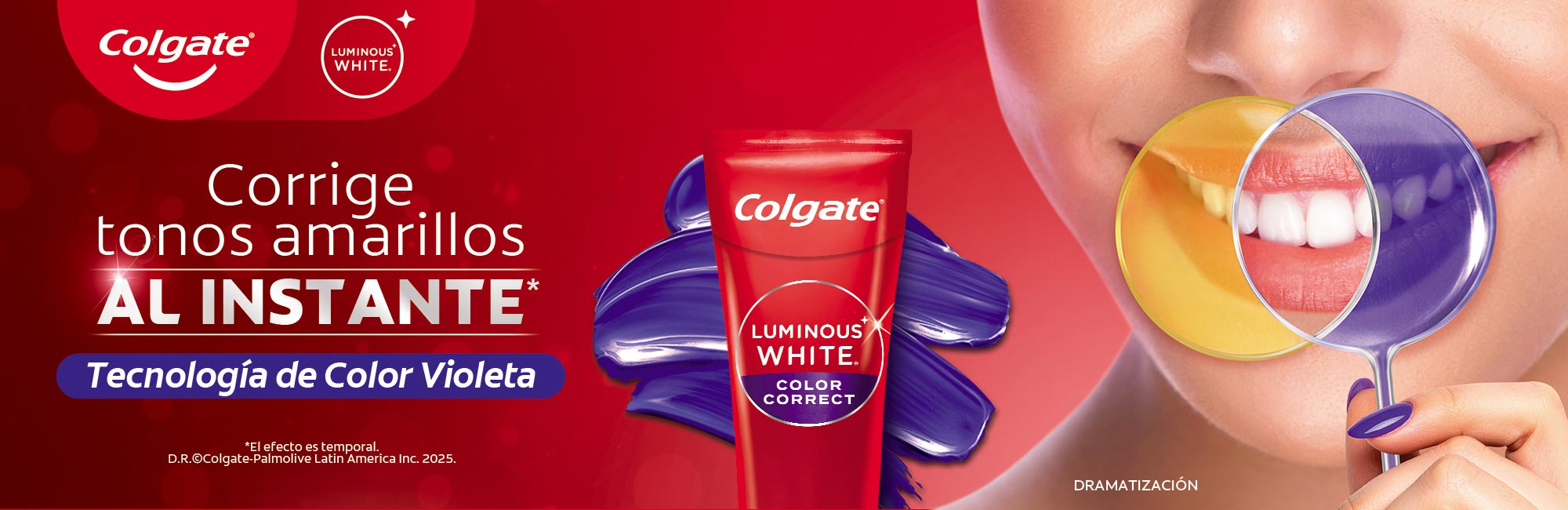 ColgatePasta dental Colgate Morada Luminous White Color Correct 70g | fresh Mint Corrige tonos amarillos crema dental anticaries con fluor tecnología de ...