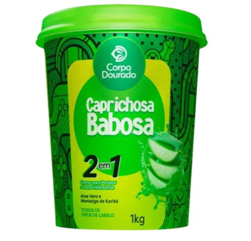 Corpo DouradoCrema Caprichosa Babosa 1 Kilo / 2 en 1 Crema de tratamiento y para peinar para todo tipo de cabello Combinando Aloe Vera + Manteca de Karite crea...